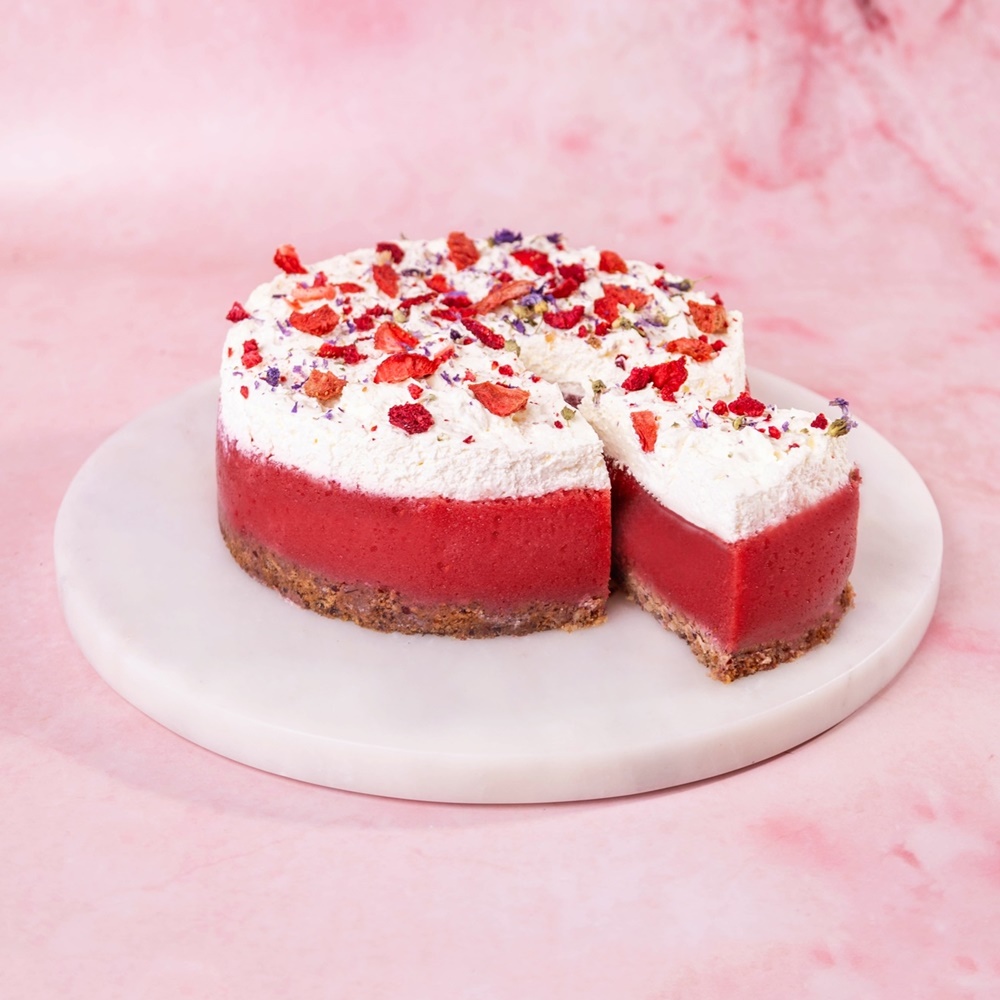 Mocno owocowa pozycja, dla miłośników orzeźwiających deserów. Kruchy, orzechowy spód, malinowa żelka i lekka śmietankowa pianka.
