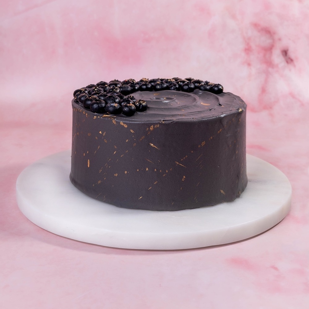 Jaja, mąka migdałowa, mąka kokosowa, mascarpone, śmietanka, maliny, kakao, masło, erytrytol, truskawki, proszek do pieczenia, cytryna, płatki róży, kamień winny, borówki, czarne kakao, złoto, czarny barwnik